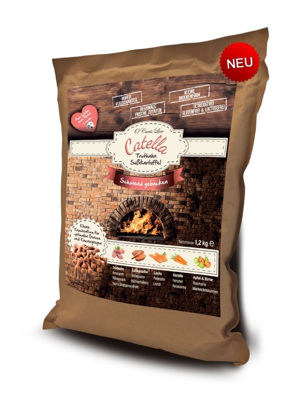 Krmivo je hypoalergenní a zcela bez obilovin, obsažená zelenina a ovoce pak zajišťuje dostatek kvalitní vlákniny, sacharidů, vitamínů a minerálů. Tento dokonale vyvážený, bohatý a důležitý zdroj bílkovin a sacharidů je určený především menším psím gurmánům. Malá psí plemena mají dokonce až o 60 % vyšší spotřebu energie než psi velkých plemen. S ohledem na jejich rychlý metabolismus O´Canis speciálně pro ně pečlivě sestavil recepturu Catella Line.