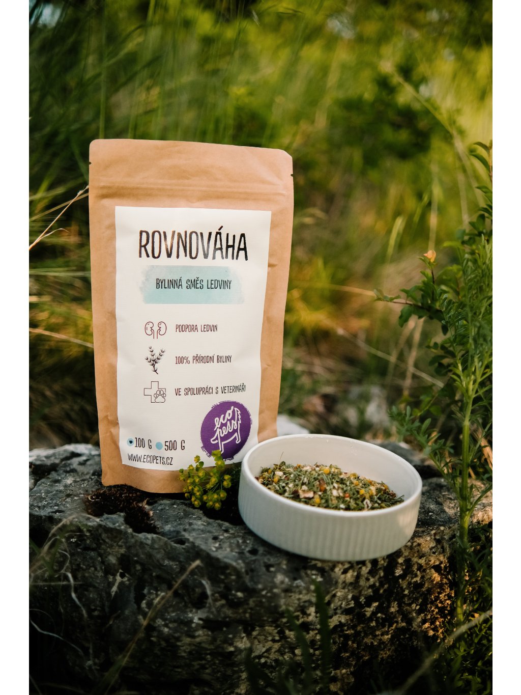 Přírodní bylinná směs  Ecopets Rovnováha posílí ledviny i močový měchýř vašich domácích miláčků – šetrně a bez chemie. Směs je svojím složením vhodná i na Slinivku.