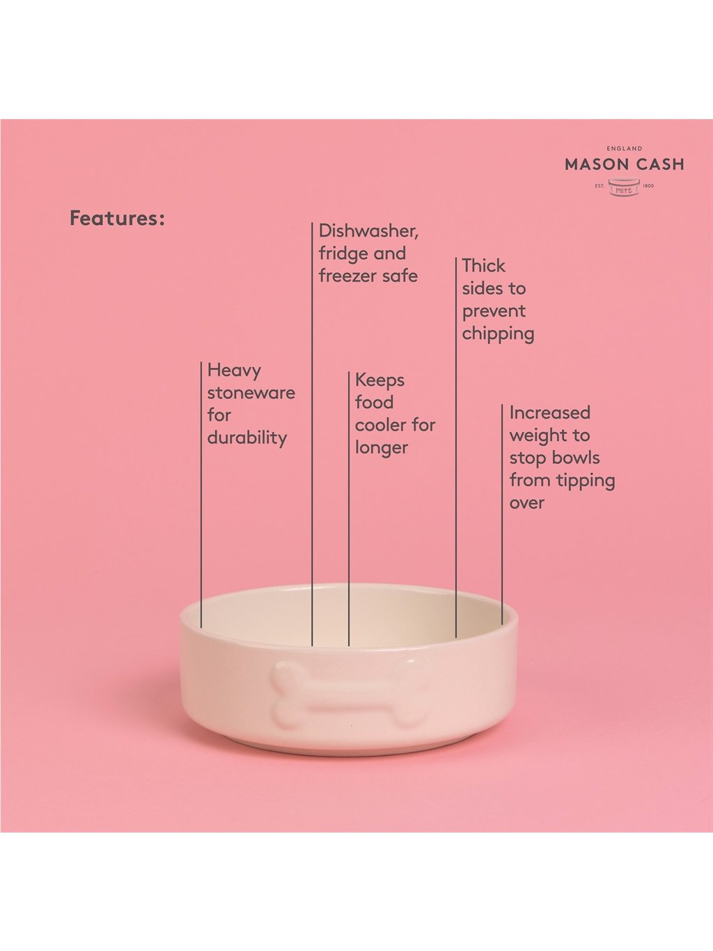 - Elegantní design s tradicí: Nápis Pet Cane dodává misce osobitý šmrnc a ladí s každým interiérem. Mason Cash je značka, která spojuje funkčnost s designem.