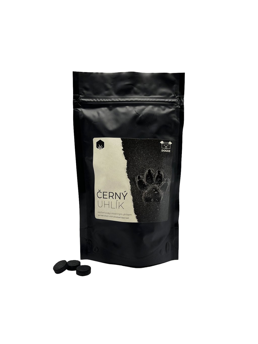 ČERNÝ UHLÍK je pamlsek s živým uhlím, který byl vyroben ve spolupráci se start-upem Živý uhlík. ŽIVÉ UHLÍ je přírodní přípravek z rostlinného uhlí, podporující zdravé trávení. Pomáhá udržovat rovnováhu střevního prostředí a podporuje rozvoj střevní mikrobioty. Pamlsek je vyrobený v Česku a zabalený do rozložitelného obalu.
